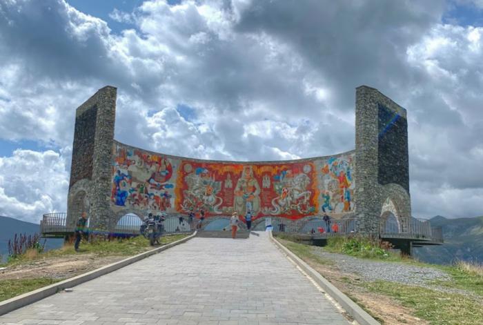 Далее по пути обязательно Арка дружбы народов. С неё открывается очень красивый обзор на горы и падающие с них реки.