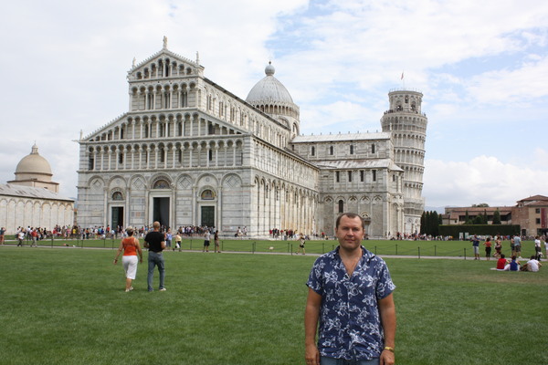 7 сентября — день одиннадцатый. сегодня у нас пробег Генуя – Флоренция -260 км, но посмотрев по карте, что буквально по пути у нас Пиза, мы внесли и ее в Джи Пи Эс как промежуточную точку. в Пизе цель одна Пизанская башня хотя проезжая по городу видели очень много интересных развалин, памятников и т. д, но решили не размениваться. прямо возле Башни в 100 метрах огромный платный паркинг, на нем за 3 евро наша машина 2 часа нас и дожидалась. Всегда думал что Пизанская Башня, это одиноко стоящее наклоненное строение, оказалось что это целый комплекс из 4 строений, выполненные одном стиле, и башня несмотря на свою раскрутку не самая яркая в этом комплексе.