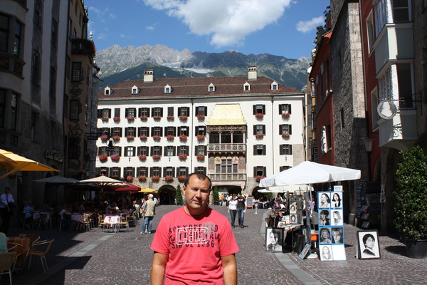 Потом небольшой фрагмент старого города, и знаменитая *Золотая крыша* чуть дальше неплохой вид с моста через реку на этот город, если есть время –то в этом направлении мотается автобус- 5 км и вы можете на канатной дороге неплохо прокатится в горы. в принципе это того стоит. в целом как основной этот город в графике ставить не стоит 2-3 часа – вполне достаточно, но и пропустить как то жалко. Если все таки есть необходимость в нем переночевать, то отель над *А* пишут две точки, и если есть возможность возьмите номер 423, я в нем жил, есть большой балкон с прекрасным панорамным видом на горы. и еще этот город считается столицей Тироля, по улицам очень много местных Фрау в тирольских костюмах.
