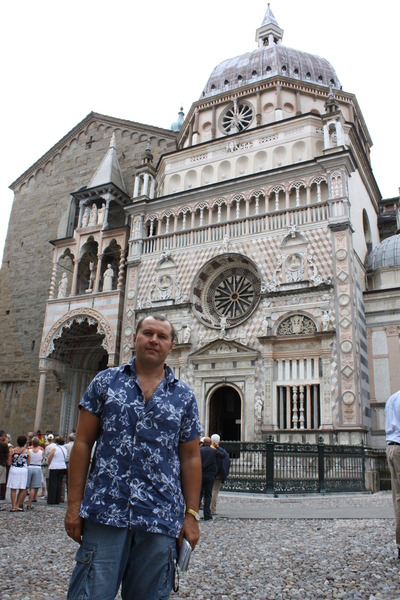 Кто я? что бы спорить с Стендалем?, но мне понравилось, еще один плюс авто тура, я не планировал Бергам а просто проезжая мимо решил * А почему бы и нет….?* и когда ты и твоя машина вместе –то делов то………. а в итоге микро счастье и довольство собой, что смог правильно поступить, и не промазать мимо такой красоты. Фуникулер за одно евро доставит вас из нижнего города, в верхний. Верхний город просто замечателен БЕРГАМ АЛЬТА так его называют местные, Сан-Спирито, Сан -Бернандино, Сант -Алесандро,, Сан -Бартоломео-эти восхитительные сооружения в 100 метрах друг от друга, все настолько непохоже на остальную Италию но все таки в итальянском стиле, прекрасный храм где все внутреннее убранство вместо фресок, выполнено в скульптурно рельефном стиле, то есть трехмерная графика средневековья, и просто не с чем сравнить, в то что видел не мог поверить, слишком сложно и слишком красиво для небольшого городка где то в глубинах Италии. Нижний город также имеет несколько интересных мест но просто не было времени, а жаль.