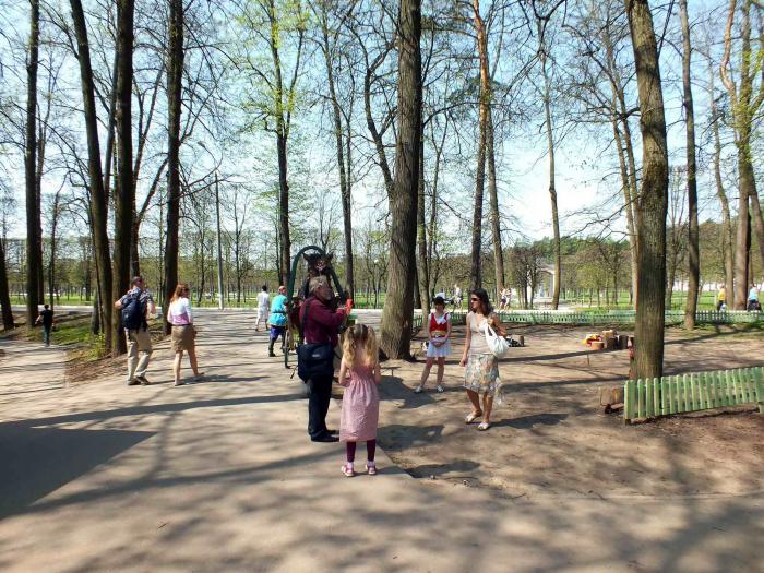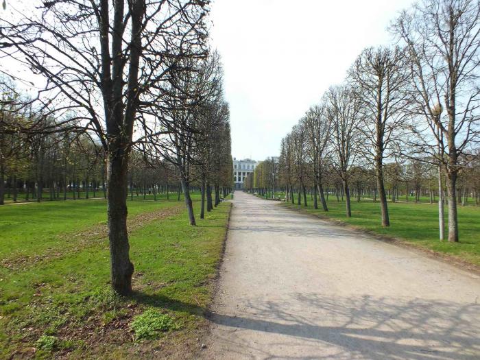 Деревья в аллеях аккуратно подстрижены, а молоденькие листочки только распускаются.