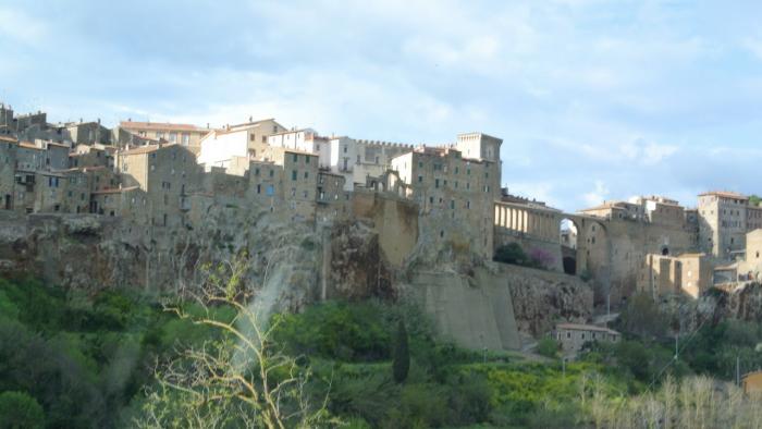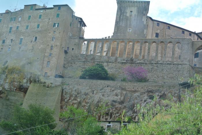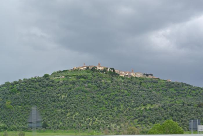 Температура воды 37,5°. Стоянка находится в 200 метрах от самих ванн. Она тоже бесплатная, поэтому и не благоустроенная, но чистая. Мы повалялись в «ваннах», приняли гидромассажные процедуры под струями бьющей воды, пропахли сероводородом и, надо сказать, проголодались. День был субботний, близился вечер, поесть там было негде, поэтому поехали дальше, направляясь теперь в заброшенный город Чивита ди Багнореджио. Навигатор долго не понимал, что мы от него хотим. После изучения карты, задали ему просто Багнореджио и он согласился указывать нам дорогу. По пути мы попали в очень интересный город Питиглиано.