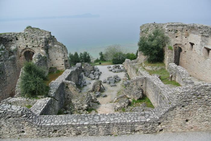 Внутрь замка мы не ходили, пошли гулять по городу, двигаясь к оконечности полуострова, где находится грот Катулла – частный особняк древнеримской эпохи. Как выяснилось, Катулл – это поэт эпохи Республиканского Рима. Само слово грот ассоциировалось с пещерой, но здесь оказались хорошо сохранившиеся развалины большого по площади замка с бассейном, крытыми галереями, терассами. Короче, древнеримская «дача». И всё это среди оливковых деревьев. В какой-то момент создалось ощущение изоляции от внешнего мира. Кроме того, открывался панорамный вид на озеро. Всё закончилось посещением археологического музея на выходе из комплекса, там собраны различные артефакты эпохи Римской империи.