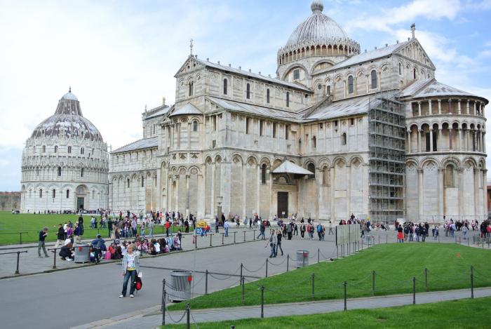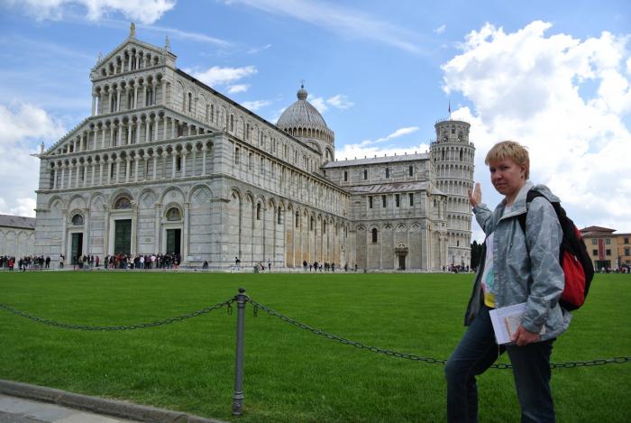 Пиза произвела впечатление какого-то игрушечного городка. Городской транспорт практически незаметен, он ходит, как-бы, вокруг города. А в центре спокойная размеренная жизнь, такое ощущение, что местных жителей нет, а есть только одни туристы. Мы направились на Площадь чудес, где находится знаменитая падающая башня и другие памятники архитектуры. Путь наш пролегал по живописной набережной реки Арно.