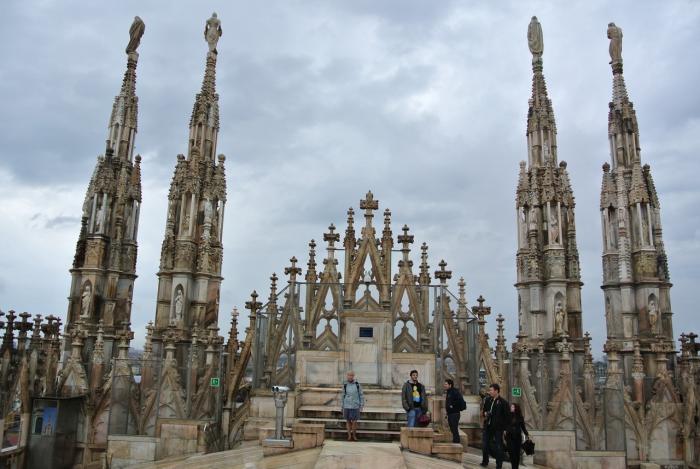 После осмотра собора поднялись на его крышу, откуда открывается вид на весь город. Гуляя по крыше увидели вблизи множество шпилей, статуй, колонн, ажурных перекрытий, витиеватых башенок. Удивительно, как руки человека могли выполнить такие конструкции из камня, какая должна быть фантазия, чтобы сначала создать их в своём воображении. Пожалуй, крыша произвела не менее яркое впечатление, чем сам собор.