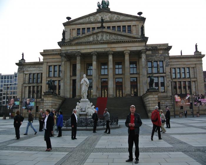 Машину оставили на парковке и пошли по Вильгельмштрассе, Унтер-ден Линден, дошли до Старого музея, полюбовадись Берлинским кафедральным собором, прошли через площадь Жандарммаркт, пофотографировались на фоне Концертного зала, Немецкого и Французского соборов.
