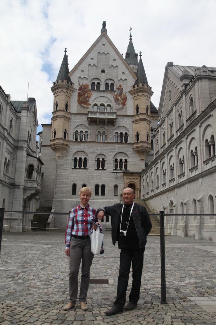 При дневном свете замки предстали в ещё более сказочном виде. Мы отправились в кассу, решили посетить оба замка: сначала старый замок Хоэншвангау, затем новый – Нойшванштайн. Видимо ещё был не сезон, так как с билетами проблем не было, хотя предусмотрительные туристы покупают билеты заранее, через Интернет. Об этих замках очень много написано как в Интернете, так и в печатных изданиях. Хоэншвангау («Высокий лебединый край») – старый рыцарский замок 12-го века, реконструированный королём Максимилианом 11 Баварским. Это монументальное и, вместе с тем, очень изящное строение. А Нойшванштайн («Новый лебединый камень») построен его сыном – романтическим королём Баварии Людвигом 2. Прошли по замкам с аудиогидом полюбовались озёрами Альпзее и Шванзее (то самое, лебединое). Архитектура поразила своим величием, красотой, удивительной гармонией с окружающим пейзажем, функциональностью конструкций и продуманностью архитектурных решений. Не мудрено, что именно эти места с их лебединой темой вдохновили Чайковского на создание знаменитого балета. Подробно описывать интерьеры замков не буду – это гораздо лучше сделано на различных туристических сайтах. Отмечу только тот факт, что несмотря на пересечённую труднодоступную местность и достаточно затяжные подъёмы, мы видели очень много туристов с ограниченными возможностями. Это достойно восхищения, как этими путешественниками, так и властями, которые делают всё возможное для доступности подобных достопримечательностей для таких туристов.