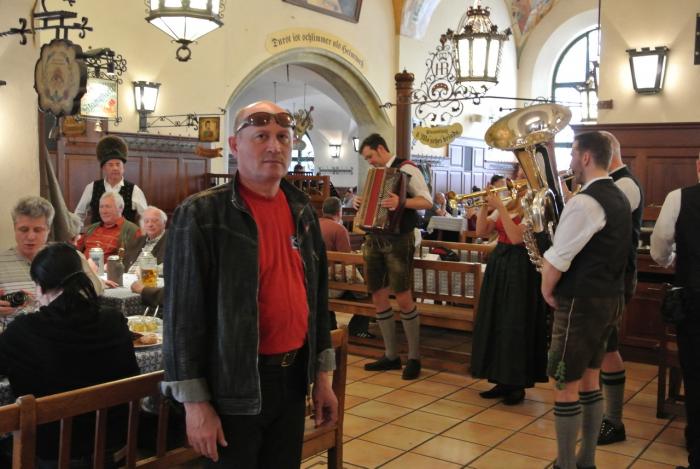 Движемся в сторону центра, оставляем машину на подземном паркинге и идём гулять по городу. Сначала посетили пивной зал Хофбройхаус, знаковое место, так как именно здесь произошёл пивной путч, положивший начало политической карьере Гитлера. При входе сразу окунаешься в атмосферу шумного веселья с одной стороны и неторопливой беседы за кружкой пива – с другой. Большие столы, непрерывный гул толпы, весёлая баварская музыка, которую исполняет квартет, одетый в колоритные национальные костюмы – всё это создаёт удивительное приподнятое настроение.