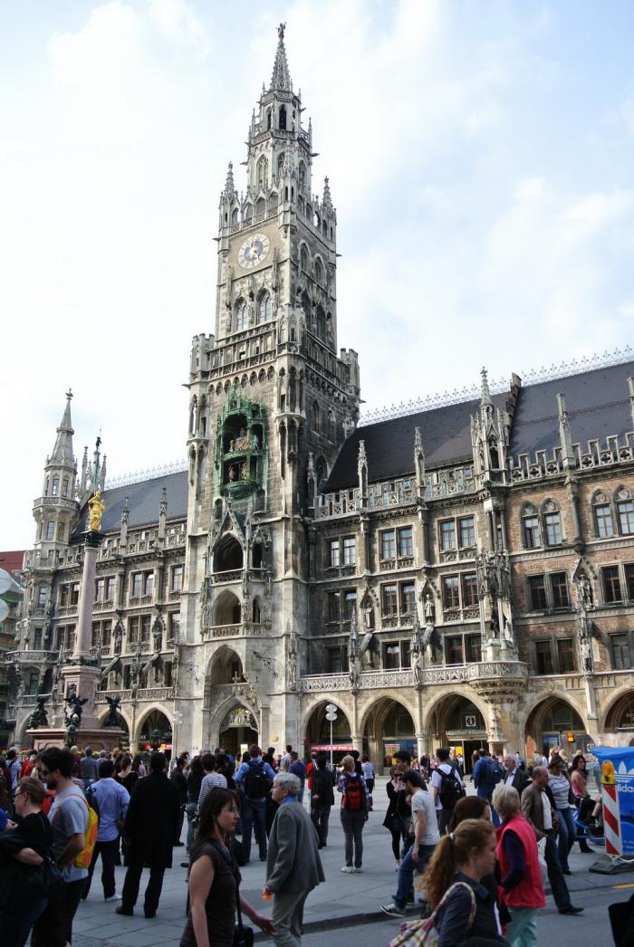 Нельзя не отдать должного вкусной еде, огромным порциям и, в принципе, умеренным ценам. Прекрасно проведя время в Хофбройхаусе, мы отправились на Мариенплац. Там шёл ремонт, но, тем не менее, было очень красиво. Посмотрели на здание Ратуши, послушали бой часов, наблюдая движение 32-х фигурок, появляющихся друг за другом. Дальше дошли до Фрауенкирхе – собор очень красив.
