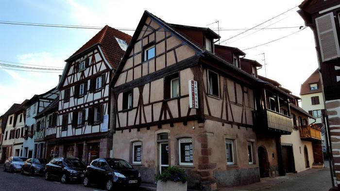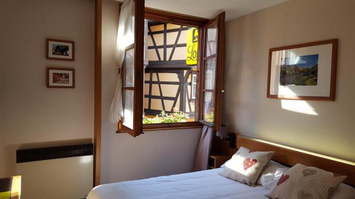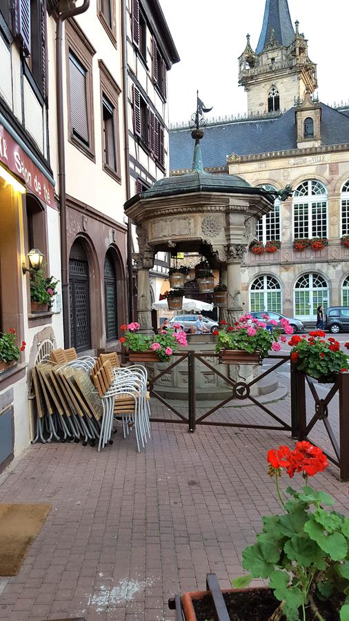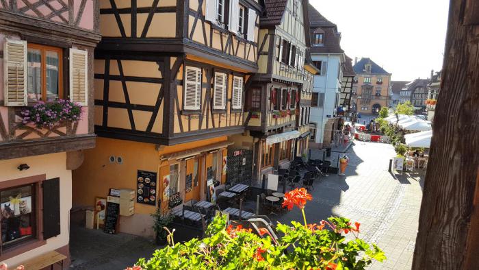 Нам мечталось пожить в настоящем фахверковом доме и поэтому выбор выпал на отель Sainte Odile** на главной торговой площади Rue Du Marche в центре города.
