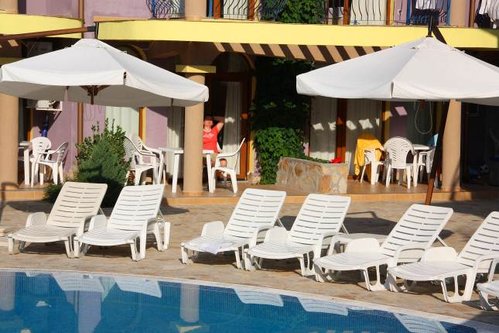 Отель хороший, огромные номера (80 кв. м) и близко от моря. В номере у нас четыре комнаты (все с кондерами), два санузла и полный комплект всего, что может понадобиться, от стиральной машины до полностью укомплектованной кухни. Большой бассейн. Стоимость 50 евро.