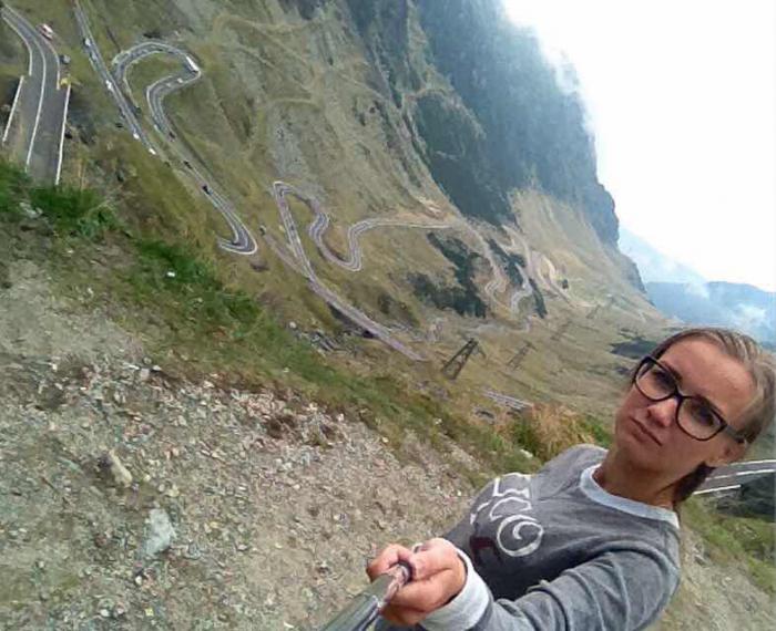 Пока ехали на гору. я такая крутая представляла, сейчас залезу на машину сделаю крутые селфи на фоне дороги. АГА, посмотрите на это перепуганное лицо. Я еле заставила себя выйти из машины