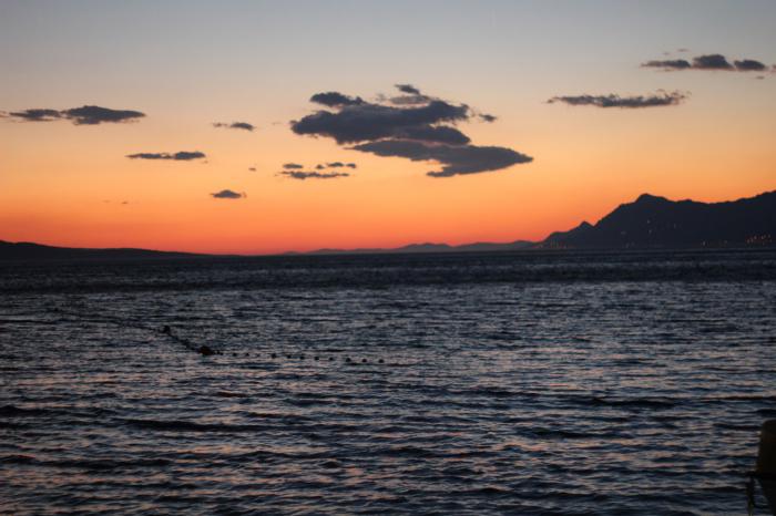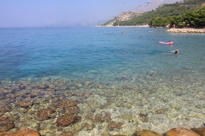 Под конец нашего отдыха, мы уже привыкли к бодрящему морю, я для интереса взяла детский термометр с собой на пляж — 20 С!!! Не знаю, мне было свежо. Море очень чистое, ты мог заплыть на 200-300 метров от берега и ты видел на дне каждый камушек, каждую рыбку. Волн практически нет. Водорослей и медуз нет!!!