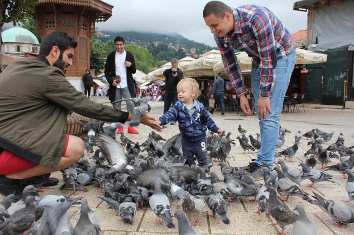 Люди в Сараево такие добрые. К Максиму все подходили брали на ручки, обнимали, говорили какой он милый ) у ребёнка столько эмоций было от Сараево, особенно от кормления голубей! Мы его не могли час!!! Усадить в машину
