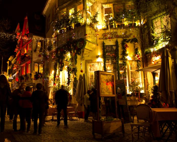 Католическое Рождество. Сложно объяснить, но Страсбург производит неизгладимое впечатление в любое время года. Центр города большой, но уютный, там быстро осваиваешься. Можно бесконечно где-то гулять, каждый район города имеет свое лицо и характер. Гете говорил, что Страсбург — это город который приводит душу в движение. Вот никакой патетики, так и есть! Но Рождество в Страсбурге — это отдельная история! Иллюминация, украшения, игрушки, елки, рождественские базары — реализованы самые немыслимые идеи! Во второй день нашего там пребывания так совпало, что мы вошли в город под звон колоколов Cathedrale Notre-Dame de Strasbourg… это было непередаваемо и потрясающе! Собаке больше всего из украшений понравилась разноцветная подсветка в мостовой (видимо, фонари были теплыми). Получилось фото в духе Энди Уорхола! Приятный сюрприз — в центре города парковки на Рождество оказались бесплатными! Надо иметь в виду, что рождественские базары закрываются рано, около 6 вечера (Рождество — семейный праздник, все спешат домой). С вечера 24 декабря числа до 26 практически все магазины будут закрыты.
