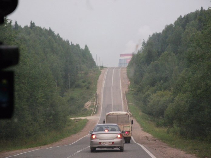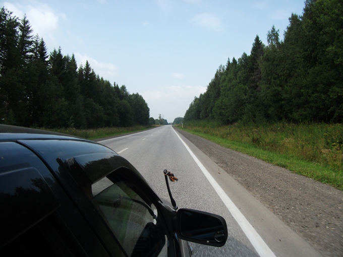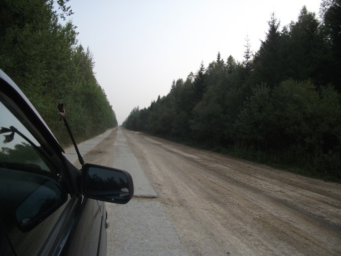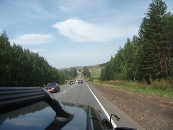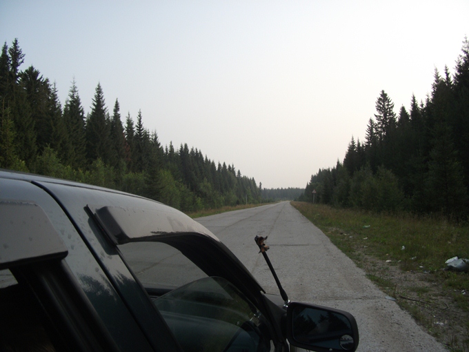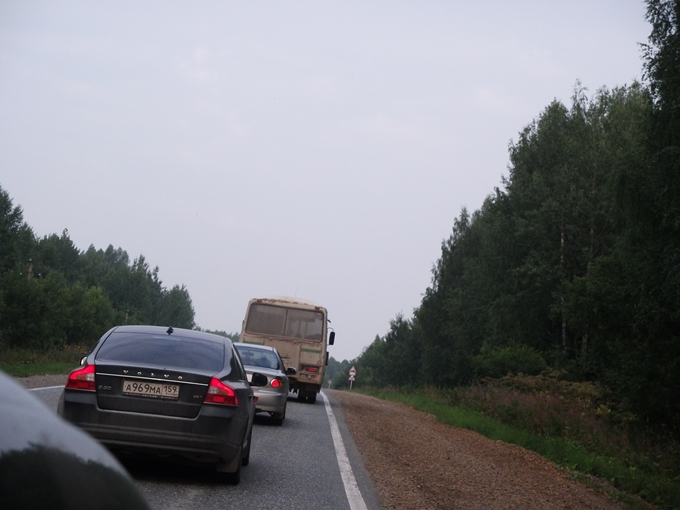 До самой Яйвы (около 20 км) не могли обогнать ПАЗ, местами дорога плохая, и почти на всем протяжении обгон запрещен (или просто я устал за рулем и тормозил)) )