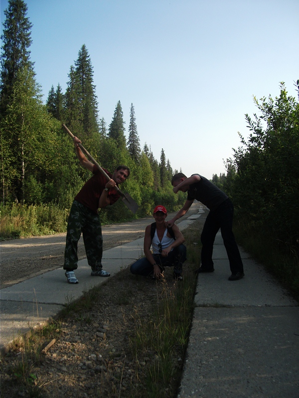 по пути встретили карьер, потом мы узнали, что отсюда возили грунт для реконструкции дороги Яйва-Чикман, то что рядом с бетонкой