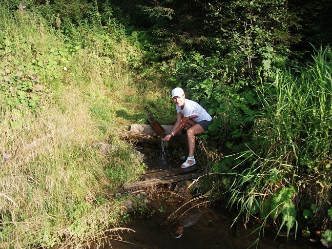 Как только выехали из поселка остановились возле «Пьяного ручья». Тут обычно останавливаютя уставшие путники, шоферы лезовозов, чтобы набрать ледяной водицы. Мы не исключение, набрали 10 литров воды, я выкопал небольшую ель, чтоб посадить на могилу отца, он так хотел приехать на Чикман и посмотреть… но