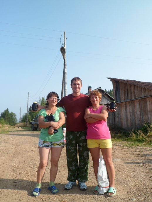 Тут каждая встреча как в программе «жди меня»… Выходит старушка к калитке и называет меня Игорем, я отвечаю что нет, она говрит: «щас сама скажу… Андрей и Лена». Вот объясните мне, прошло 22,5 года, а она узнает, как такое может быть? Это наш бывший фельдшер Клепикова Антонина Ивановна. А не узнала она сразу потому, что не могла найти среди нас Игоря, старшего брата. Она принимала роды, когда родился я (это было на Яйве) и Лена (Скопкортная, до Яйвы доехать не успели). Угостила кофе и рассказала про нас в детском саду, про папу и маму. Приятно когда о нас так хорошо отзываются