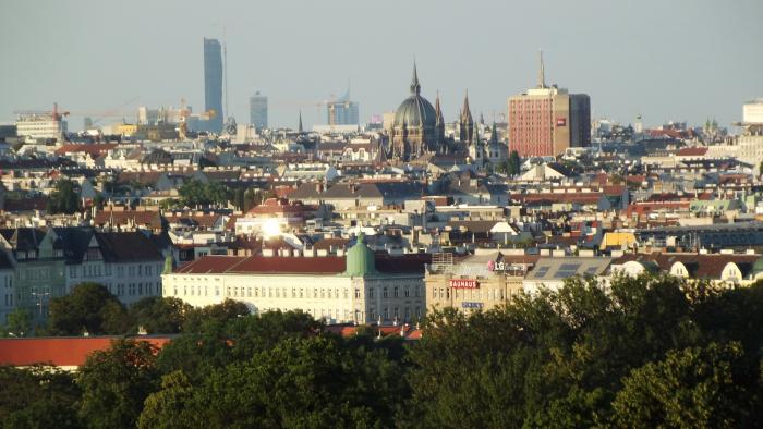 Красиво. Поднялись на самый высокий холм, с которого хорошо видно всю Вену.
