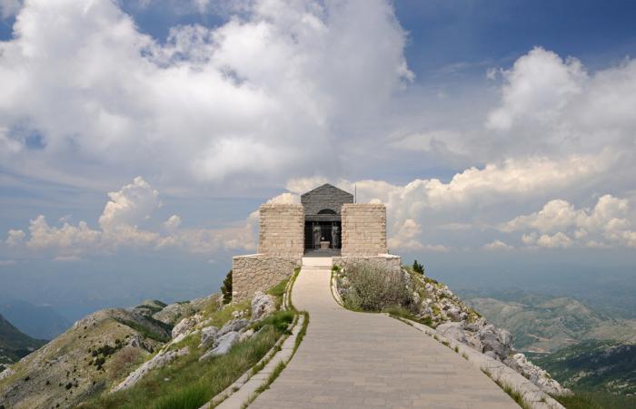 Вход в мавзолей стоит три евро. Раньше тут церковка стояла. В 1845 году Петр II Петрович-Негош выразил желание быть после смерти похороненным в часовне, основанной им же на горе Ловчен. Своей жизнью, трудами, правлением он заслужил безграничную любовь сограждан, которые считали его достойным другой, самой-самой высокой вершины страны. Однако митрополит предполагал, что когда-нибудь появится в Черногории деятель, чьи заслуги будут еще более значимы для жизни народа. И его место должно будет оказаться выше. Останки несколько раз перемещались с горы в цетинский монастырь и обратно по различным причинам, да и сама часовня несколько раз разрушалась и восстанавливалась. А в 1974 году вместо часовни построили мавзолей, что вызвало споры и протесты среди населения. Спустя всего пять лет в Черногории произошло сильнейшее землетрясение, которое многие православные верующие посчитали карой за разрушение одной из главнейших национальных святынь.