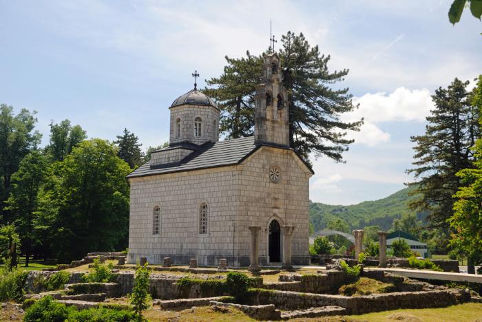 Основным объектом посещения был конечно монастырь, но очень интересно расположилась неподалеку церковь Рождества Богородицы на Джипуре (Цетине). Красиво так выделяется она на холме. На самом деле исторически всё было ровно наоборот нашему посещению этого места. В 15-ом веке черногорский князь Иван Черноевич находился в итальянском изгнании, где дал обет Божьей Матери, что если вернется, то построит в её честь церковь. Когда он вернулся, до сдержал обещание и здесь на горе Джипур основал монастырь с церковью, часовней и колоннадой. Затем вокруг монастыря вырос целый город Цетине, ставший затем столицей страны. Монастырь был полностью разрушен турками и впоследствии его перенесли на нынешнее место, а на холме на старом фундаменте в конце 19-го века отстроили новую церковь, как память о минувшем. Именно в ней находится гробница с останками Ивана Черноевича, а так же мраморные гробницы последнего черногорского князя Николы I Петровича и его жены Милены, перенесённые сюда из русской церкви в Сан-Ремо (Италия) в 1989 г.