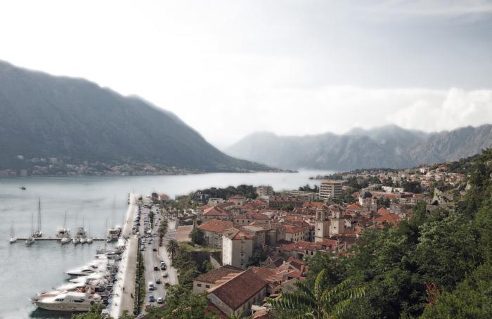 Только ушли от них, как выскочили к видам на Бока-Которский залив. Есть несколько мест, где оборудованы смотровые площадки. Хорошо еще, что эти спортсмены оказались не чужды прекрасному и также тормозили везде, где можно, а то в Котор до темноты мы б может и не попали бы.
