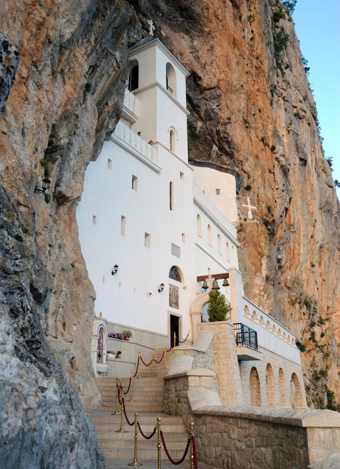 Быстро поняли ошибку, увидев выше вдалеке высеченный в скале храм, что узнали по картинкам. По узкому серпантину отправились выше, гадая можно ли это делать и до какого времени возможно посещение монастыря. Оказалось, что там есть большая площадка для транспорта. Монастырь открыт и наполнен людьми. Очень многие пришли и приехали с емкостями для воды, сразу в нескольких местах тут можно её набрать. В одном из открытых помещений нами был обнаружен целый склад одеял и матрасов. Ощущение такое, что верующие приходят сюда с вечера и остаются ночевать, чтобы успеть к утренним службам. Для самих черногорцев этот монастырь является символом веры. Православные паломники со всего мира считают важным для себя событием посещение этого места.