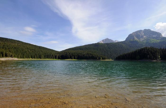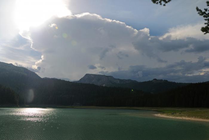 Посещение парка предполагает путешествия по различным пешеходным маршрутам, которые водят туристов по различным живописностям, однако время уже послеобеденное, впечатлений уже выше крыши, сытный обед настраивает на умиротворение. Знакомство с Дурмитором ограничилось прогулкой по берегу озера и созерцание водной глади, окружающих гор и весьма грозно выползающей из-за оных темной тучи, намекающей на завершение посещения парка.