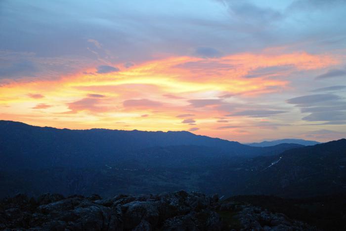 Даниловград, куда мы вывернули через какие-то пригороды, встретил нас мостом через Зету и стелой военных лет. Уже совсем ночь. При этом вокруг оживление, гуляющие люди, машины, от которых я почти отвык за сегодня. До Подгорицы отсюда рукой уже подать и словно не выезжаешь за город. По обе стороны строения, трафик плотный, постоянные встречные фары в большом количестве. Хорошо, что всё это только до столицы. Дальше дорога снова опустела. До Скадарского озера без вариантов, а вот за ним я решил ехать альтернативной дорогой через горы. По карте кажется, что так мы срежем, на деле же выходит, что из-за многочисленных поворотов путь оказывается во-первых, длиннее, а во-вторых, медленнее и утомительнее. Но интереснее ездить разными путями и мы отправились на серпантин. Мои пассажирки уверены, что лишь за тем, чтобы им жизнь медом не казалась.