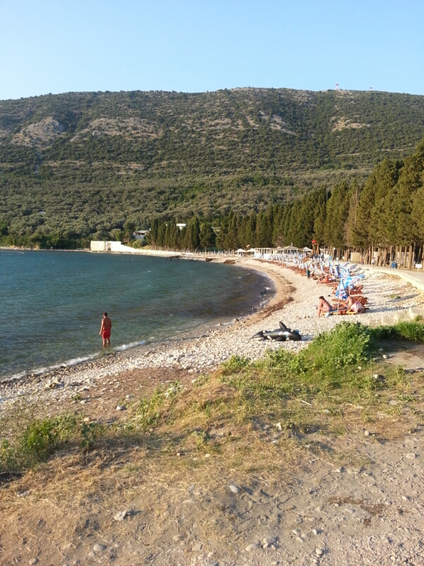Что сказать по пляжам – гОдно, за исключением городского (помните? Я не пляжник ). Одна беда для всех пляжей – солнце. Нет, не так. СОЛНЦЕ. Мы сгорели в первый же день (наутро). Да так, что до сих пор на плечах следы. Это ЖЕСТЬ товарищи. Масло было чуть меньше среднего по защите – НИ О ЧЕМ. Уезжали отколупывая корочки L Везде и всегда передвигались перебежками от тени и до тени. Будет фото, как мы ехали в Цетине – снаружи борткомпьютер показывал +47 на ходу. Я так понял – это было по всей Черногории. Так вот Велика плажа в этом отношении – опасное место, если не подготовится. Ветерок обдувает – да, хорошо, но СОЛНЦЕ таки жарит – пусть никого не обманывает свежесть прибоя. Берегите и себя, и детей. Но, думаю, в обычное лето там вполне даже комфортно.