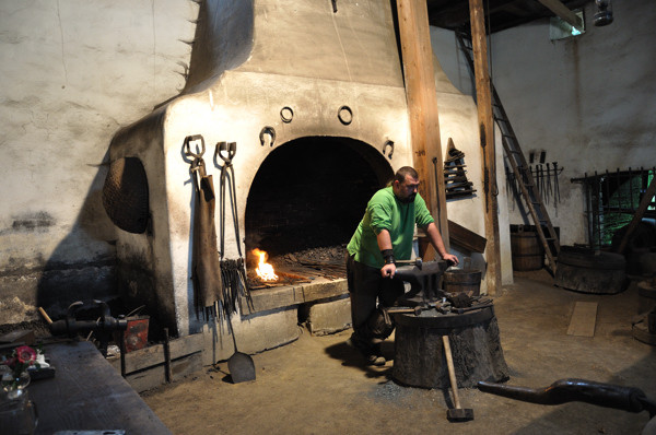 Утром зашли в пару магазинчиков с детской одеждой, но ничего ребенку не подобрали. Поехали в Валашский музей. Очень интересное место. Хороший пример, как надо сохранять и демонстрировать свою историю, при этом не забывая о бизнесе. Три маршрута, один только в составе группы. На этом маршруте показывают древние механизмы типа лесопилок, мельниц, кузниц… Все работает. Вода течет, пила пилит, жернова крутятся, меха раздувают огонь… Экскурсовод рассказывает и включает-выключает механизмы.