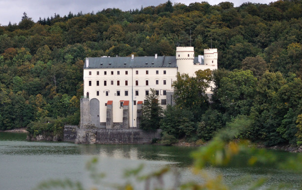 С утра переехали к замку Орлик (49°30'45.84''С 14°10'11.75''В) и сходили в него на экскурсию. Ничего особенного. Потом прогулялись по окрестностям, посмотрели на замок с другой стороны заливчика Влтавы.