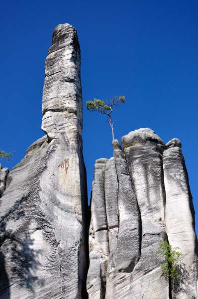 Первым пунктом нашей поездки был запланирован интересный природный регион. Первая остановка — скалы Adrspach (50°36'54.53''С 16° 7'22.25''В), ухоженный (я б даже сказал — вылизанный) район с проложенными дорожками и установленными ограждениями. Видны следы былого скалолазного присутствия, но только следы. Везде указатели: «туда не ходи, сюда не ходи». Довольно бестолково нарисованная карта в путеводителе. Погуляли, посмотрели, немного поплутали среди скал.