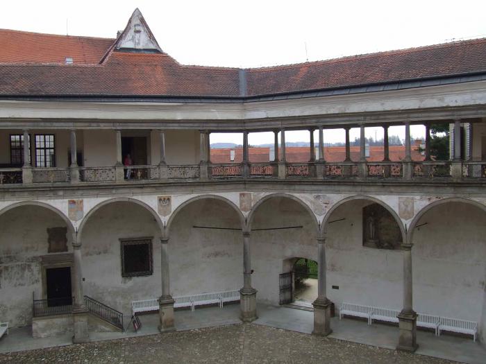 Замок Тельча. Побывали на экскурсии по внутренним залам. Впечатлило. Экскурсия на чешском, но вручают распечатанные тексты на русском — для каждого зала свой. В принципе, удобно, если умеешь очень быстро читать… Фоткать, правда, внутри не позволили.