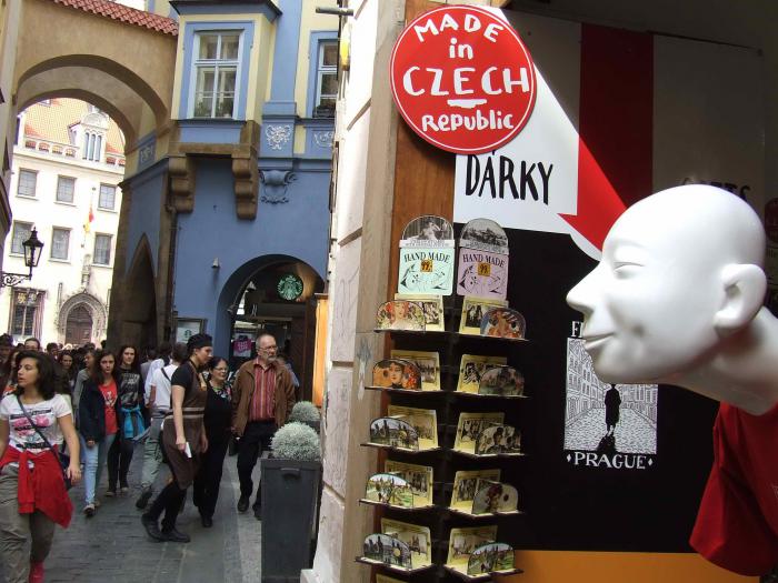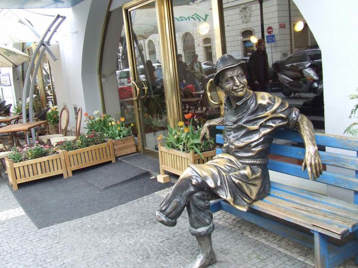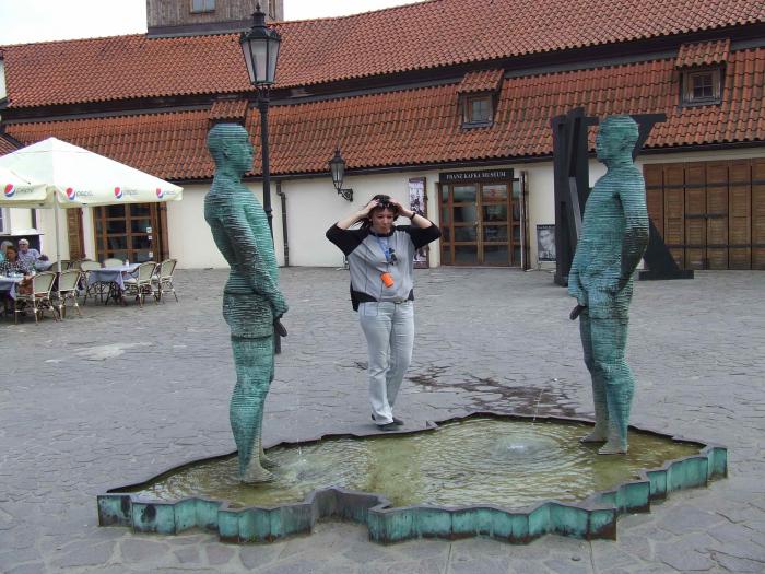 или мимо скандального фонтанчика, привлекающего туристов в музей Кафки.