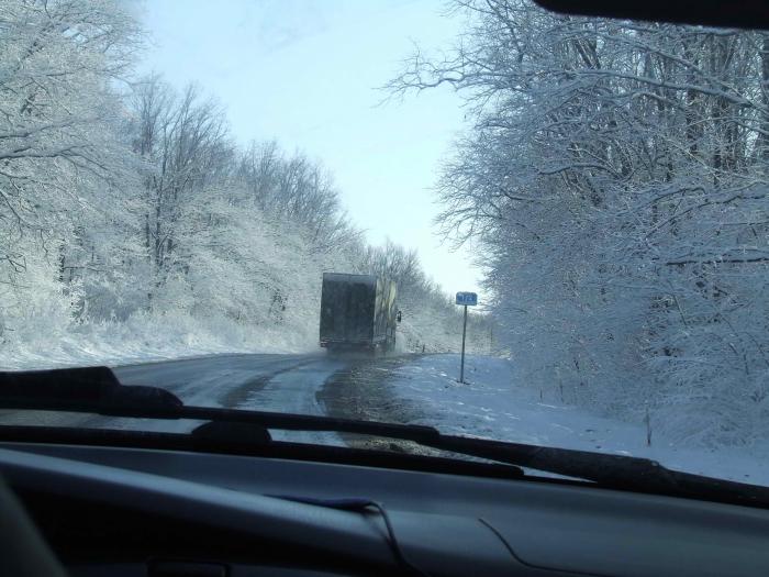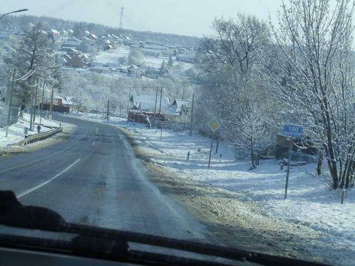С рассветом при подъезде к Орлу опять началось — наледь на дороге, минус 8, заснеженные поля и деревья — и так до Ельца. А дорога все время оврагами- косогорами… Водителю пришлось вспомнить все молитвы…