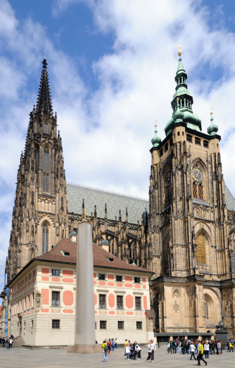 Надо заметить, что местное солнышко тоже проснулось и стало гораздо уютнее, как и должно быть в этом городе. Кафедральный собор св. Витта сначала удивляет своей историей, всё-таки не каждое сооружение строится целое тысячелетие, затем впечатляет размерами.