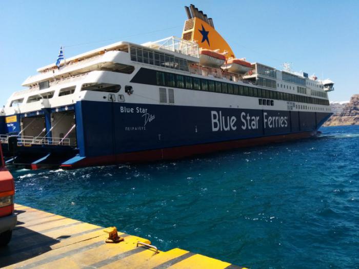 Время отправления парома достаточно условное. Время 17.00 в билете по факту оказалось временем его прибытия. Правда, причаливают они очень ненадолго. Через 20 мин. он уже отплывает. Машин почти нет, 3-4. Не покупайте ни какой бизнес класс. Это носовая жаркая часть и не справляющийся кондиционер. Странно, но там куча народу. А в обычных залах 30% загруженности и прохлада. На корме парома ресторан, в котором для нас часа полтора пели блюзы две потрясные негритянки. Пиво в ресторане парома 5 евро. Паром летит со скоростью примерно 60 км\час. Когда возвращаешься на Крит, возникает ощущение, что ты оказался на материке…