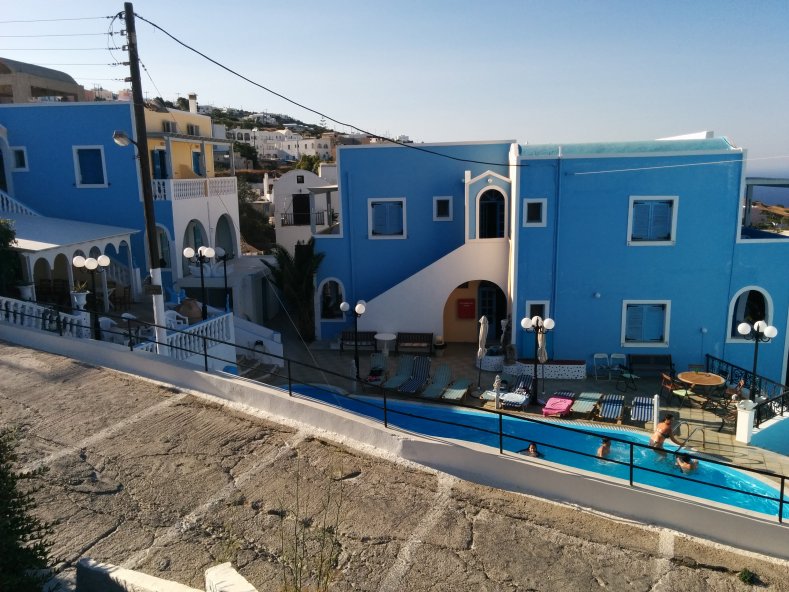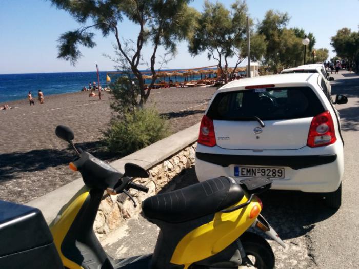 Пока мы шли от автостанции в Фире до гостиницы Hellas 2* (около 1 км.) прошли мимо, наверное, 20 прокатов любой техники, включая яхты. Похоже, этот бизнес по уровню доходности такой же, как нефтегазовый комплекс в России. Один из работников сказал, что его хозяин, владелец трех таких точек, имеет 25000 евро в день: все, кто приезжают на остров, гоняют по нему на всем подряд сутки напролет. А многие берут и яхты…
