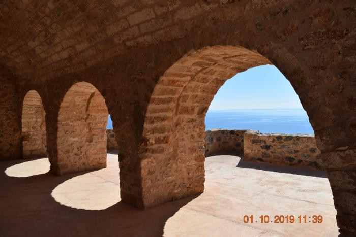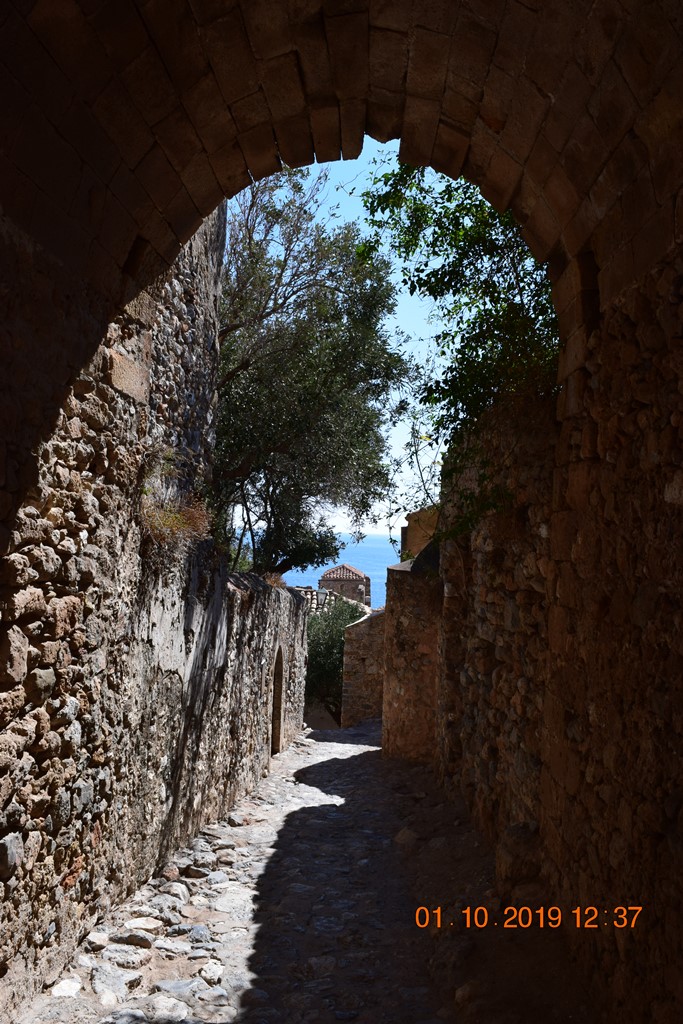 Если кратко-кратко, то Монемвасия была основана в 6 веке бежавшими от захватчиков жителями Спарты, но уже в 587 году её захватили славянские племена, потом: византийцы, франки, опять византийцы, османы, венецианцы и снова османы и только после обретения Грецией независимости в 1821 году Монемвасия вернулась к родным берегам.