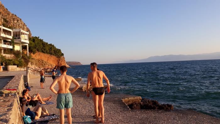 Пляж Арванития всего в 10 минутах неспешной ходьбы от гостиницы. Спуск к пляжу навеял воспоминания о пляжах Южного берега Крыма.