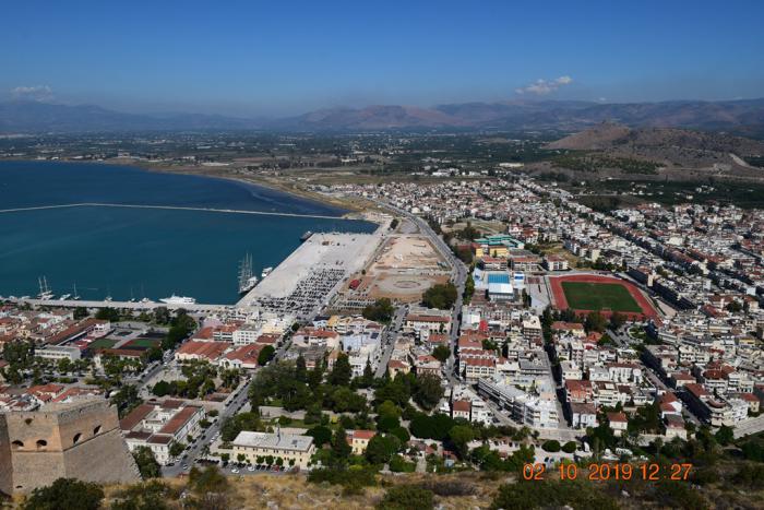 Из Монемвасии в Нафплион можно поехать по самому короткому пути вдоль берега моря, но это не значит, что он самый быстрый, потому что здесь будет 170 километров сплошного серпантина и, учитывая то, что средняя скорость на серпантинах около 40 км/час, баранку будешь крутить-вертеть не менее четырёх часов. Мне на это сомнительное удовольствие жалко времени, поэтому поехал по самому длинному пути. Более того, в Спарте свернул в сторону Мегалополиса, и только потом на Триполис. Прямая дорога от Спарты на Триполис узкая и загружена фурами и очень неторопливыми греками. Всего получилось 230 километров, которые проехал за два с половиной часа. Почти всё время ехали по магистрали, только после Аргоса поползли в плотном потоке машин. На магистрали было три пункта оплаты, в общей сложности заплатил 7 евро 25 центов.