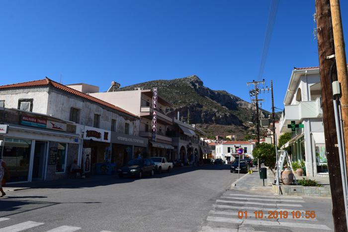 Итак: ранний подъём, заплыв в море, который прогоняет сон лучше любого кофе, завтрак в кафе на набережной, потом глянцевание завтрака в кондитерской-кофейне пирожнывыми (индульгенцию от ожирения мы уже купили утренним заплывом) с кофе, сдача ключей от номера, погрузка вещей в машину. И вот к одиннадцати часам (не прошло и полгода) мы на остановке, откуда каждые полчаса отправляется автобус в Монемвасию. Билеты нужно покупать заранее в кассе возле остановки. Она слева под оригинальным названием «Malvasia travel».