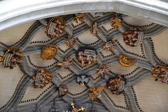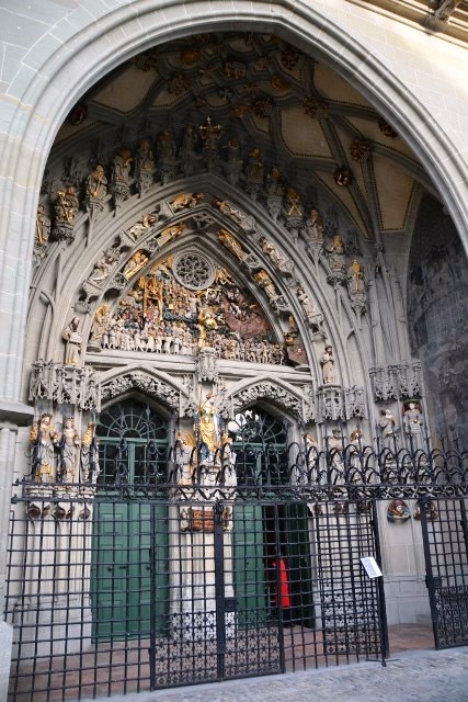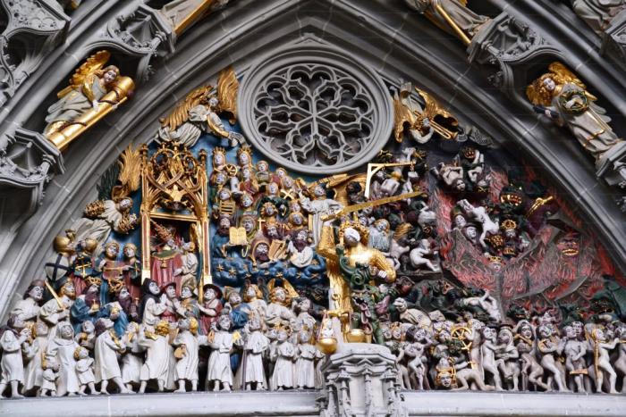 В результате, к громадине Мюнстера мы подгребаем уже после 18 часов. Несмотря на то, что народ входит внутрь – нам туда путь заказан: пускают только на службу. Так что нам приходится ограничиваться лицезрением грандиозного портала со сценами Страшного суда: