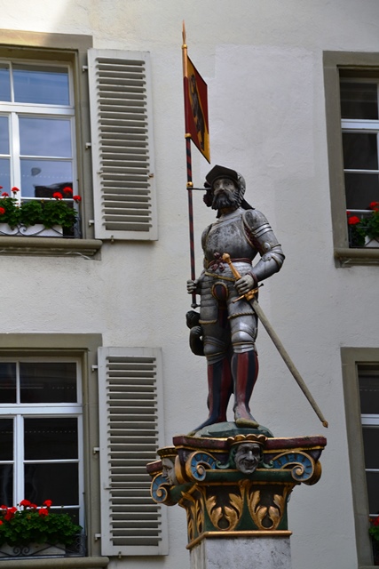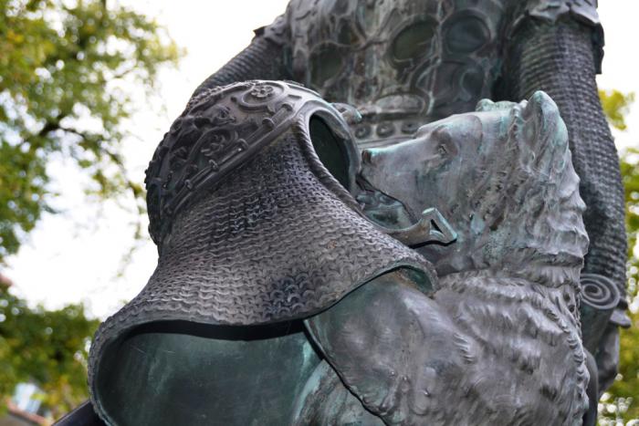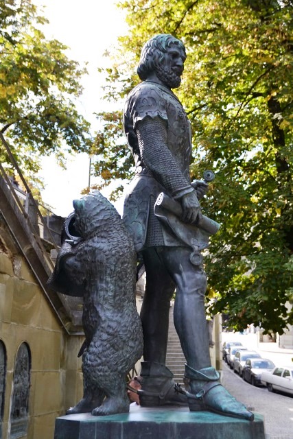 А этот бронзовый косолапый, вынюхивающий подкладку шлема, — часть памятника основателю Берна Бертольду V во дворе церкви Нидегг:
