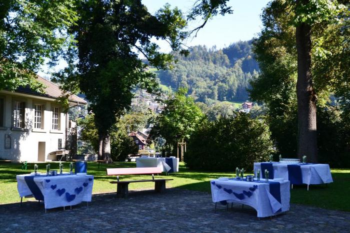 В уютном церковном саду накрыты столы для торжества – и ни души вокруг: