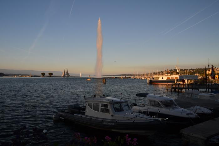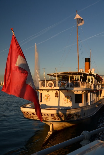 В общем, в Женеве мы впустую потратили два или три часа – просто не сложилось и не повезло. Так что, выбравшись на берег озера, пришлось себя немного поуспокоить. Это получилось довольно легко, так как озеро на закате было очень выразительным: