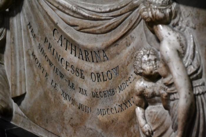 Среди множества саркофагов один не может не привлечь внимание русского человека – это могила юной жены знаменитого Григория Орлова – Екатерины Орловой: