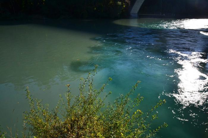 Когда мы дошли до стрелки – места слияния двух рек, я чуть не расплакалась от обиды. Надо было смотреть сверху, с моста, тогда было бы хоть что-то понятно! А так у нас не было обзора и казалось, что это просто сточные воды вливаются в реку: